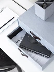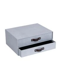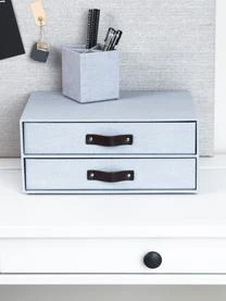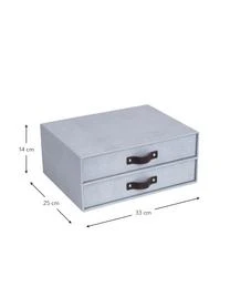 Der Organizer mit zwei Schubladen und dekorativen Ledergriffen sorgt für Ordnung in Ihrem Büro. Der Organizer ist für Standarddokumente im DIN A4 Format geeignet.