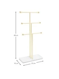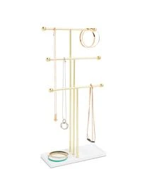 Der große Schmuckhalter hat einen hohlen Metallfuß und ist somit trotz seiner größe leicht und elegant. Dank der drei unterschiedlich hohen Stangen ist er sowohl für lange Ketten, als auch Armbänder geeignet. Praktisch und dennoch hübsch anzusehen!
