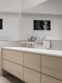 Der Seifenspender ist mit weiteren Produkten der Rim Serie kombinierbar.